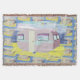 Câmera rosa giro na praia desenho de arte digital para amantes da vida viagem. Cor de fundo personalizada.