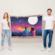 Uma bela pintura digital de um casal sentado no terraço à noite, olhando para as estrelas. O céu está cheio de estrelas de todas as cores, e a Via Láctea é visível à distância. O casal está sentado perto um do outro, e eles parecem estar gostando da companhia um do outro e da beleza do céu noturno.
