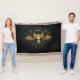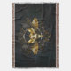 Composição de preto e ouro desenhada artificialmente, simétrica, asas de pássaros, ouro, crânio de pássaros decorado com padrão dourado sobre fundo escuro e texturizado.Estilo gótico