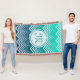 Plano de fundo azul esverdeado Elegante e gesso Zigzag branco. Monograma personalizado