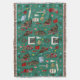 Drawings of a tabby tortoise (torbie) cat wearing a scarf adorn this Christmas blanket, as well as drawings of vintage ornaments, a cozy fireplace, wreath, stocking, Christmas cookies, eggnog, rolling pin, bubble lights, holly, retro snowflakes, and a book of Charles Dickens' masterpiece, A Christmas Carol. Decorate your home or warm yourself up under this cozy blanket and feel the holiday spirit.