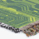Crie uma apresentação visualmente impressionante de um cobertor cibernético que incorpora a essência da tecnologia moderna e da design inovadora. O cobertor deve apresentar de forma destacada uma paleta de cor verde-amarelada, lembrando um circuito vibrante. Incorpora padrões complexos que imitam layouts eletrônicos de conselho, linhas de exibição e conexões semelhantes a um conselho de circuito interno. Procure uma estética enfurecida e futurista que combina conforto com o atrativo da alta tecnologia, apelando para aqueles que apreciam a moda e a tecnologia.