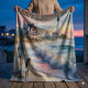 This dreamy coastal artwork captures a tranquil moment at the shoreline, where a woman strolls barefoot with her dog, the soft pastel tones of the setting sun casting a warm glow on the sand and sea. A charming beach house sits nestled among windswept grasses, its porch inviting and timeless, while a stately lighthouse watches over the horizon. Gentle waves roll in with watercolor softness, and hints of blush pink, misty blue, and sun-kissed gold give the scene an ethereal, nostalgic quality. The entire composition evokes slow living, serenity, and the quiet magic of coastal escapes. With a relaxed, coastal cottagecore vibe and a soft, painterly style, this piece blends warmth and whimsy in perfect harmony. AI generated artwork.