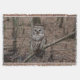 Uma coruja barrada impressionante empoleirou-se em um ramo de árvore em um design marrom da cobertura do lance da imagem da floresta! Que ideia maravilhosa do presente do housewarming do tema da coruja! Olhará lindo no sofá! Buzina!