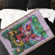 Uma fada preta, toda de púrpura e vermelha, sentada sobre um cogumelo e um homem verde borda a fada
