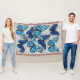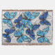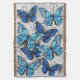 Composição vertical de borboletas de morfo realistas, azuis e brancas sobre fundo texturizado de cinzas. Borboleta azul Morpho.