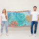 Pintura de aquarela original, de Sandra Taylor Gale, de uma variedade de corais esponjosos e espinhosos num fundo de turquesa e azul claro e aquoso. design de excelente para casa de praia, móveis de verão, ou apenas para adolescentes em dormitórios, salas para crianças ou como um lançamento de sofá de sala solar. Enfeites divertidos, brilhantes e sazonais para a sua casa ou zona de férias.