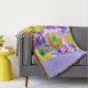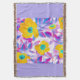 Envolva-se em conforto e cor com este cobertor tecido decorativo apresentando um ousado design floral. Flores amarelas brilhantes com centros turquesa e folhas roxas-rosadas abstratas são emolduradas por uma borda lavanda suave e terminadas com uma franja multicolorida. Perfeito para noites aconchegantes, decoração de casa elegante ou como um presente único