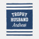 TROPHY HUSBAND, um cobertor engraçado para homens. Um cobertor personalizado bonito para o futuro marido, o noivo, o marido, em breve cara de casados etc. Citação Legal para ele. Faça seu próprio presente divertido. Presente humorístico para festas de casamento, despedida de solteiro, festa de solteira, aniversário, lua de mel etc. Personalizável em cores diferentes. Marinho, exemplo azul e branco. modelo de tipografia masculina. Adicione sua própria citação engraçada ou dizer, etc. Crie a toalha dele e dela para noiva e casal de noivo. Disponível em tamanhos diferentes.
