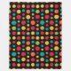 Um design de padrão sem soldadura composto por colunas de sete pontos circulares ordenados por tamanho e dispostos em direções alternadas em um palete atraente de cores.