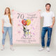 Um cobertor da idade de aniversário de na moda 70 Happy. Apresenta um balde de champanhe de óculos e balões e confete tudo sobre um fundo cor-de-rosa claro com texto de cor prateada. Perfeito como presente para comemorar um aniversário de 70, algo com que eles possam se acalmar. Seria um presente ideal para um amigo ou membro da família, como uma avó, avó, nanna, nana, nan. Pode ser personalizado alterando os títulos e a idade e personalizar adicionando o nome de uma mensagem curta e a data de nascimento ou data de 70 para tornar isto um presente verdadeiramente único e pessoal.Se necessário, a cor de fundo pode ser alterada, basta clicar no botão personalizar mais.