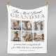 Um cobertor da família do dia de as mães moderno com o ditado bonitinho "a avó mais amada", 6 fotos dos netos, seus nomes, e a legenda "as vovós mantêm nossas mãos pequenas por um tempo, mas nossos corações para sempre".