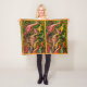 A personalized baby blanket with dinosaurs roaming in the thick forest.