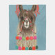 Adorou Llama IV por Victoria Borges. Apresenta uma lama de bege castanho com pompas decorativas e outros adornos.