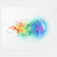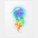 Água-viva grande, iridescente, desenhada artisticamente, brilhante, com longos tentáculos em branco, pintada sobre fundo de aquarela multicolorido. Água-viva arco-íris.