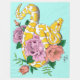 Um Python Albino Amarelo está se aproximando de rosas cor-de-rosa e pêssego em um pano de fundo.