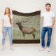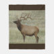 Cobertor de Fleece de Alce Macho em Veludo. Uma bela fotografia de um grande e belo alce macho com seus chifres em veludo das planícies do sudeste de Alberta, Canadá. Os tons cinza claro e a cor azul/verde da sálvia adicionam um pouco de cor à foto.