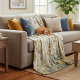 This blanket features an ethereal, meadow-inspired landscape rendered in a delicate watercolor style. Stems of wildflowers and clover-like foliage stretch upward against a warm linen-textured background, creating a tactile, fabric-like appearance.