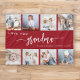 Dê à vovó um presente que ela amará. Este cobertor de colagem de fotos apresenta oito das suas fotos quadradas favoritas dos netos, juntamente com a mensagem "Love You Grandma". A palavra "vovó" aparece em um elegante roteiro branco com flores no começo e no fim em um fundo vermelho de morango. Adicione os nomes de até quatro netos. Um presente ideal para feriados, aniversários ou dia de avós.