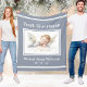 Filha do Primeiro Natal do Bebê Angel Fleece Blanket desenhado com uma imagem de anjo aquoso em azul e branco, com texto branco e sotaques. O texto inclui: Primeiro Natal, nome e data de nascimento do seu filho, num fundo azul macio. Para personalizar, basta inserir o nome e a data de nascimento do seu filho no nosso modelo fácil, substituindo o texto de amostra. Faz um presente de Natal excelente e uma manutenção duradoura.