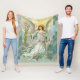 arte safena com pintura em pastéis com um anjo em vestido azul claro flutuando entre as nuvens e segurando flores.