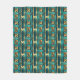 This fleece blanket features an art deco geometric pattern with arrows in simulated gold and turquoise for an elegant look.