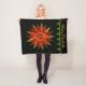Um cobertor de velo aconchegante é perfeito para a época de Férias, seja usado em camas ou na árvore de Natal. A design apresenta a pintura original de uma Deco de Arte inspirou Poinsettia em tons ricos de verde alaranjado e brilhante em um pano de fundo preto.Acima do divisor verde, campo de texto personalizado em ouro profundo para nome ou saudação.