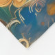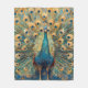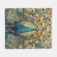 Uma ilustração digital de uma pintura de Art Nouveau de um pavão com penas de cauda completamente estendidas.