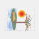 cobertor de velo com meu design original e simples, mas colorido vetor de uma palmeira, sol laranja brilhante e ondas.