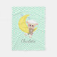 Um carneiro bonito com ursinho de peluche empoleirado em uma lua crescente faz um delicioso cobertor de bebês. Apoiado em um padrão de zague em ziguezague em minty aqua e monograma branco e personalizado que você pode editar com o nome do seu filho ou outro texto. A adorável cortesia gráfica de Kristi W. Designs.