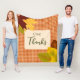 Mostre seu apreço pelo Dia de Ação de Graças, Ação de Amizade, outono, ou apenas esteja grato pelas coisas boas na vida com este cobertor de velo acolhedor. O encanto rústico do padrão laranja gingham evoca a ideia de um cobertor de piquenique vintage, enquanto as folhas desenhadas pela mão o fazem sentir como se estivéssemos desfrutando de uma tarde de outono enquanto uma brisa legal envia a folhagem.