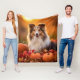 Experimente o que há de mais avançado em conforto e companheirismo com nosso confortável cobertor com um Shetland Sheepdog cão no meio de um campo de abóboras no pôr do sol, é o convite perfeito para se aconchegar com seu amigo peludo e criar as memórias do precioso juntos.