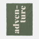 Este cobertor simples e na moda apresenta a palavra inspiradora - Aventura - na tipografia moderna e verde-florestal. Ideia de presente de excelente para amantes de viagens, exploradores e descobertas de aventuras.