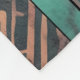 Aztec design tribal, nativo americano, com cor d'água, apresentando um padrão geométrico a sudoeste em tons azuis, cor-de-rosa e laranja pastel sobre fundo de grãos de madeira.