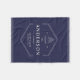 Bonito cobertor de pelúcia de família para sua praia ou casa de lago com um design moderno de ilustração de barco náutico, seu nome de família e localização de sua casa de férias, assim como o ano estabelecido na tipografia tradicional. Aqui em azul marinho.