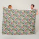 Cobertor De Velo Azul empoeirado com Flores Mauvas e Brancas