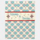 O design neste cobertor de velo ultra suave empresta seu esquema de cores de aqua suave, marfim, cinza de cinzas e padrão de azulejo vermelho e em camadas de carmim do fundo de uma toalha de mesa de 1940. 3 campos de texto personalizáveis para nomes ou outro texto estão em cima de um banner de marfim bordado vermelho com floco de neve sutil e azulejos de diamante que adiciona um toque nórdico complementar.