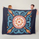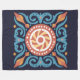Um intricado design de azulejo inspirado em boho em tons azuis, vermelhos e terras quentes. Projetado para uma aparência vintage-encontra-moderna, ideal para portas copos, arte de parede, camas e outros produtos de aparência moderna.