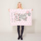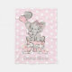 Um cobertor de velinha bonitinho com um elefante adorável segurando um balão de brilho rosa e prateado em um fundo branco de bolinhas. Personalize com o nome do seu filho. Estes cobertores fazem o dom perfeito do chá de fraldas.