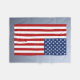 Um grande grupo da bandeira americana contra um azul protegeu o fundo