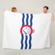 Flece Blanket com bandeira da cidade de Cincinnati, Ohio; bandeira branca com três ondas azuis com "C" vermelho no centro