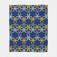 cobertor de velo com um grande impressão de floco de neve em azul, amarelo, branco e cinza de platina.