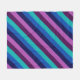 Um cobertor de velo de tamanho médio com um padrão colorido de faixas diagonais em azul legal, azul-oceano, azul marinho, roxo de ameixa e lavanda.