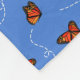 Este cobertor de padrão de borboleta fofo apresenta borboletas Monarch com suas marcas e bouncy laranjas, douradas, pretas e brancas caracterizadas, pistas de voo tortuosas enquanto flutuam pelo ar contra um céu azul - o fundo é azul personalizável, e o monograma pode ser personalizado em um pendante de círculo coordenador - por katz_d_zynes