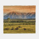Esta foto caracteriza um rebanho do bisonte que vagueia livre enquanto o sol aumenta na frente do Tetons grande.