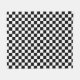 Black and white checkerboard pattern with evenly spaced, alternating squares. The design creates a classic, symmetrical look commonly seen in chessboards.