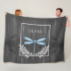 Mantenha-se quente em queda fria e noites de inverno com um cobertor personalizado de velinha rustica azul. O design de cobertor apresenta uma libélula vibrante adornada com folhagem delicada contra um fundo de madeira rústica de cinza escura. Itens de presentes adicionais disponíveis com este design, bem como uma variedade de cores.