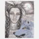 Uma mulher de indígenas e seu fiel guardião, um lobo azul mágico, estão serenamente em um campo aberto sob o luar pálido. Eles são destemidos, pois compartilham este momento especial fora do tempo. Por enquanto, não há um desejo repentino de se esconder, nenhum desejo de fugir e cobrir no mato silvestre, correndo e cortando através de um crescimento florestal denso sob as árvores. Cada um desenhar força e segurança ao lado do outro. No entanto, o olhar penetrante e ouro do lobo permanece sempre vigilante. Uma reprodução licenciada de um desenho original da artista Joyce Jackson. Copyright Joyce Jackson. Todos os direitos reservados. Não reproduzir ou utilizar sem autorização expressa do artista. As taxas de royalties licenciadas são pagas ao artista para uso deste design.