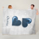 Mantenha-se quente em queda fria e noites de inverno com um cobertor de velo personalizado com coração azul. O design de cobertor apresenta um par de corações, uma vinha branca e macia contra um fundo de cinza com uma área para personalizar com o seu nome. Itens de presentes adicionais disponíveis com este design, bem como uma variedade de cores.