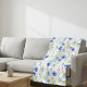 Cobertor De Velo Blue Watercolor Wildflower Monogram Name